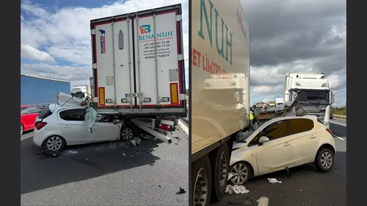 Kınalı Gişeleri Çerkezköy istikameti yönünde saat 13.40 sıralarında meydana gelen trafik kazasında, bir özel otomobil, önünde seyreden tırın dorsesine arkadan çarptı. Çarpmanın etkisiyle otomobil hurdaya dönerken, sürücü araç içinde sıkıştı.